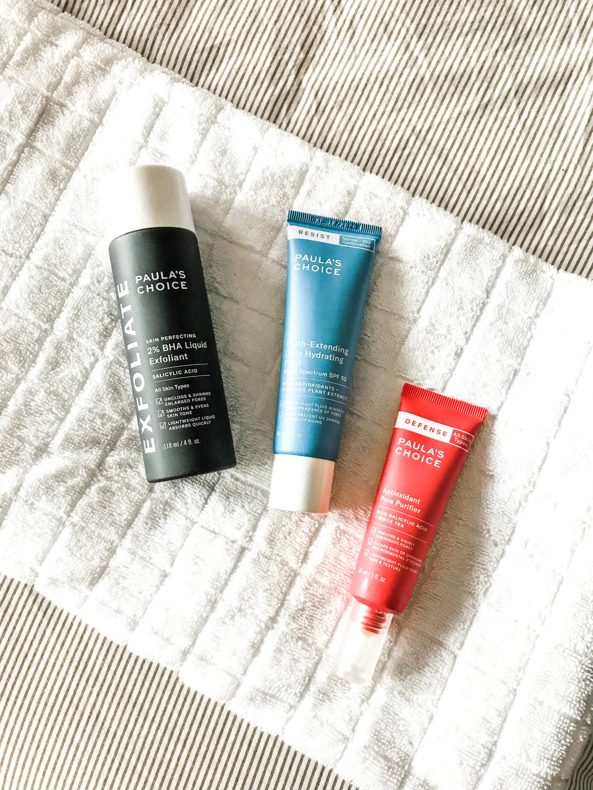 Paula’s Choice 2% BHA Liquid Exfoliant: This gentle exfoliant is part of the Skin Perfecting line & so far I’m loving it! I’ve only used it at night, post-makeup removal & post-cleansing but pre-moisturizing. It’s great because you can leave it on without worrying it’ll clog pores – trust me, I’ve been layering 3-4 products on my skin following this application & still no issues! (also available in travel size)
